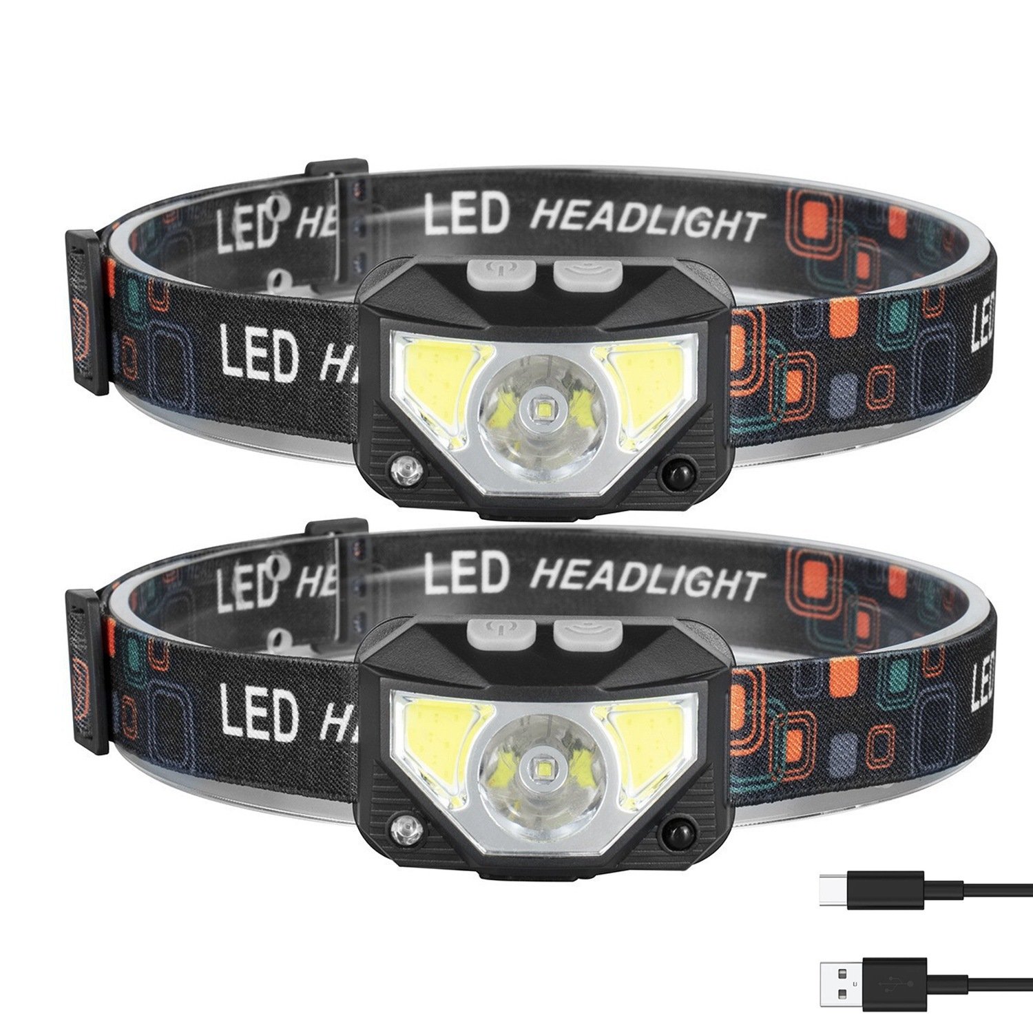 2Packs Rechargeable Motion Sensor Headlamp 6 Light Modes Headlight Torch Flashlight for Fishing Running Camping Hiking