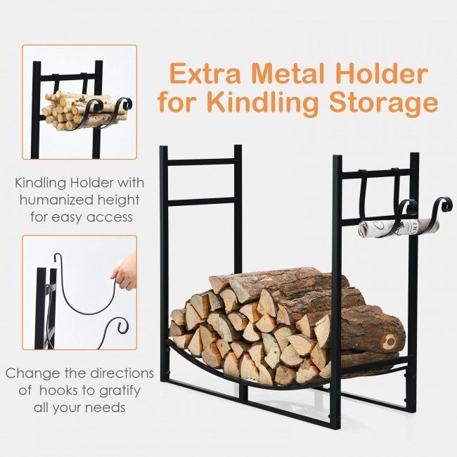 33 Inch Firewood Rack with Removable Kindling Holder Steel Fireplace Wood