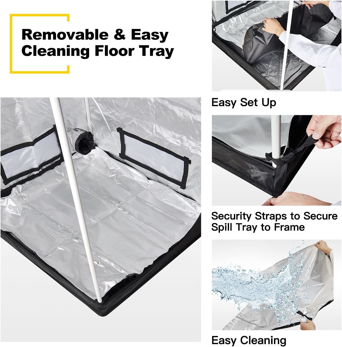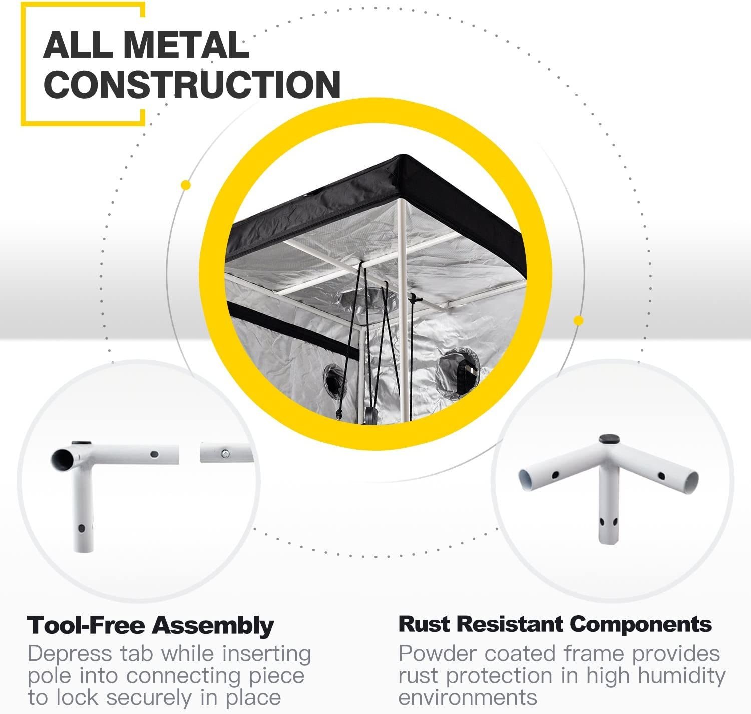 Tool Free Installation: Easy to assemble and use. No tools needed. What you get: 48"x24"x60" tent cover, floor tray, tool bag, metal poles and connectors, user manual