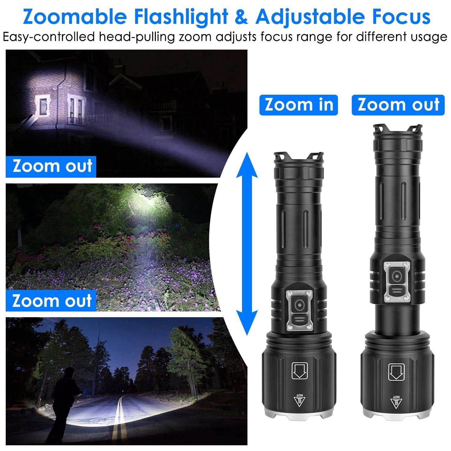 Super Bright LED Flashlight Waterproof Rechargeable Zoomable Tactical Torch Light Emergency Power Bank Support 3 Battery Types